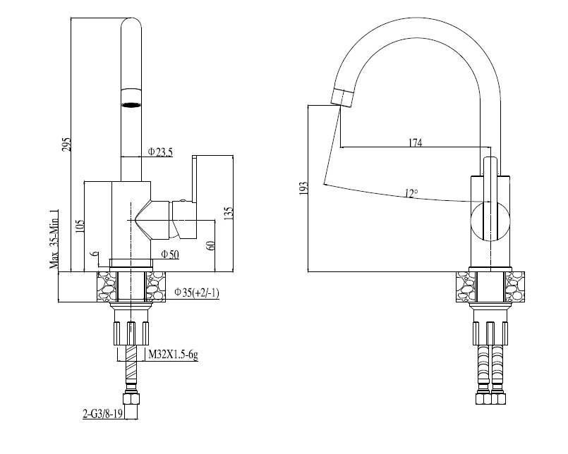 - spodní skříňka od: - I: 500 mm, U:600mm