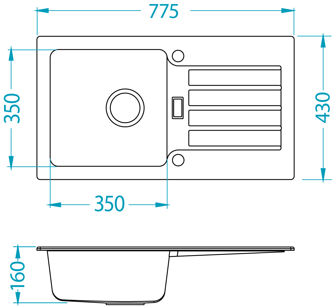 - rozměr dřezu: 775 x 430 mm