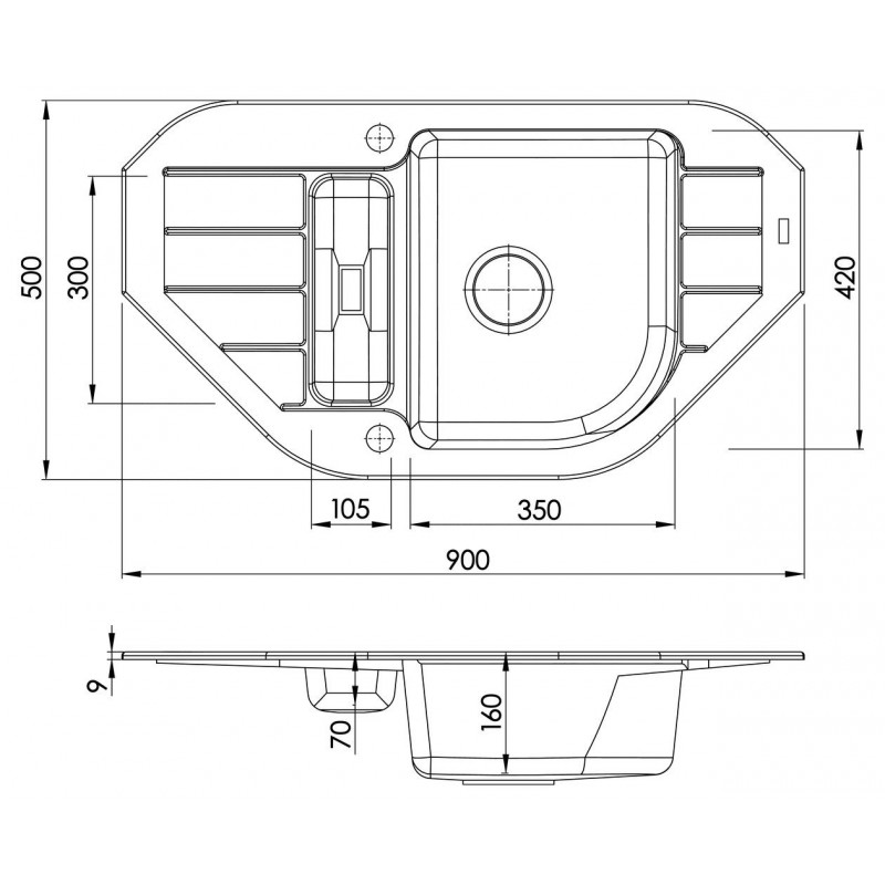 - rozměr dřezu: 900 x 500 mm
