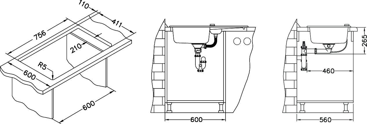 - typ montáže dřezu: standartní uložení na desku, vestavěné dřezy