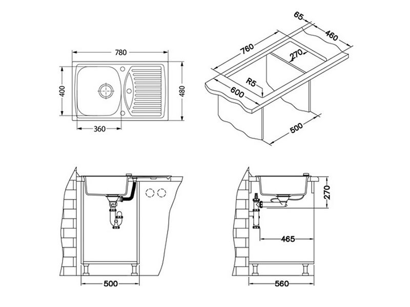 - rozměr dřezu: 780 x 480 mm