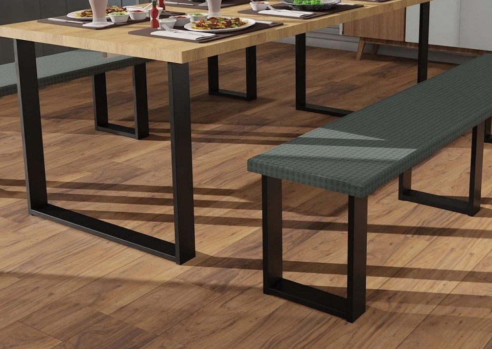 Stolová podnož ve tvaru U určená pro výrobu dřevěné lavice o výšce 450 mm.