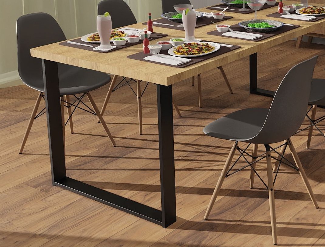 Stolová podnož va tvaru U kombinuje klasický tvar podnože s variabilním rozměrem desky.
