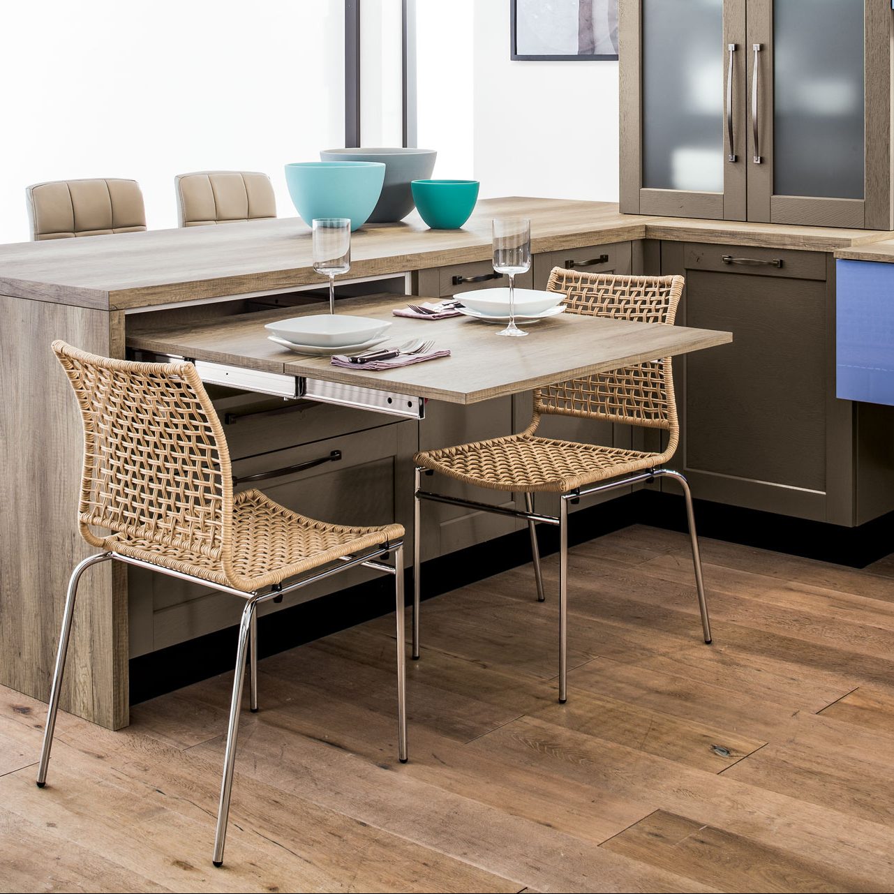 - stolová deska je skrytá za čílkem zásuvky a po vysunutí získáte 895 mm pracovní plochy navíc
