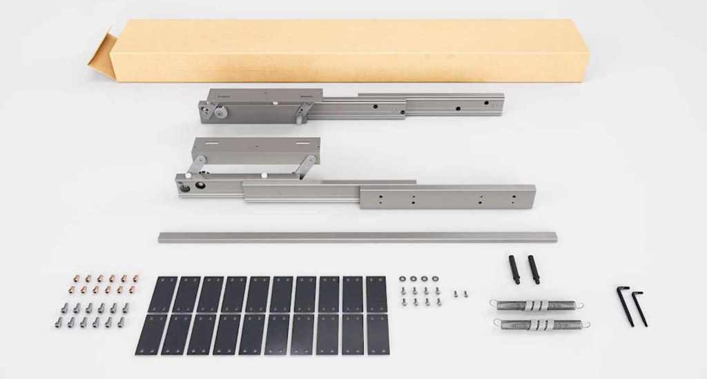 Komplet je dodávám se vším co potřebujete k montáži, neobsahuje samotnou stolovou desku.