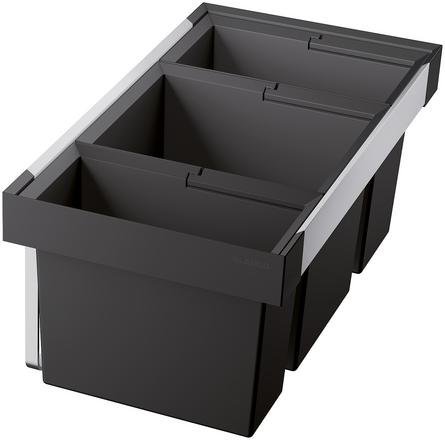 Odpadkový vestavěný koš s čelním výstupem, který přináší dokonalou kombinaci praktičnosti a moderního designu. S třemi nádobami o objemu 1x16, 1x19 a 1x30 litrů přičemž každá poskytuje dostatek místa pro vaše odpadky. Blanco Flexon II se vejde do skříňky o šířce 80 cm.