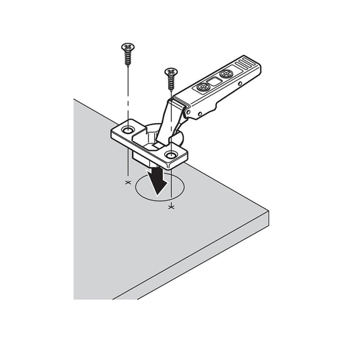 Clip Top závěs s úhlem otevření 110° naložený pro bezúchytkové otvírání dvířek TIP-ON.