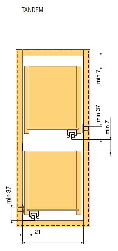 BLUM Space Twin tandem je výborné řešení pro úzké skříňky ze dřeva do všech místností, od šíře korpusu 200 mm.