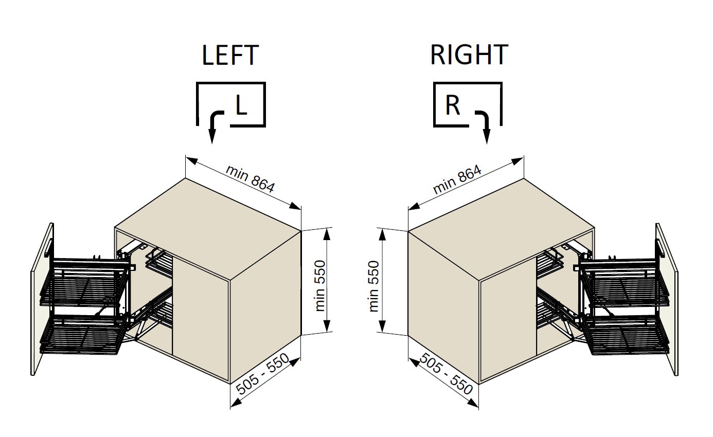 Výška korpusu min. 550 mm