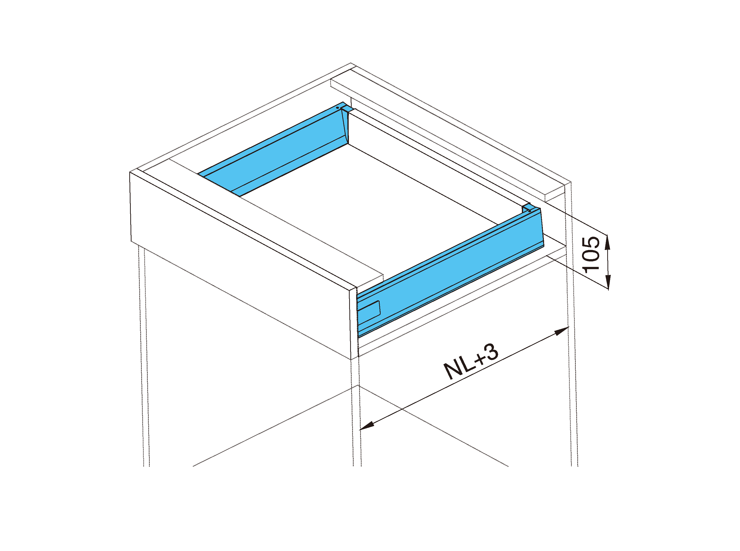 - Výška zásuvky: 84 mm, minimální vnitřní světlost otvoru je 105 mm