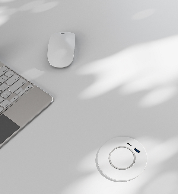 Bezdrátová indukční nabíječka FOX s USB porty je určená k montáži do stolové desky do kanceláří, učeben a pracovních stolů.