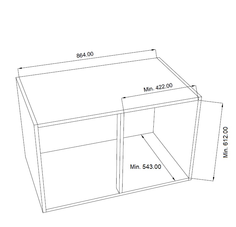- Minimální vnitřní hloubka skříňky: 543 mm