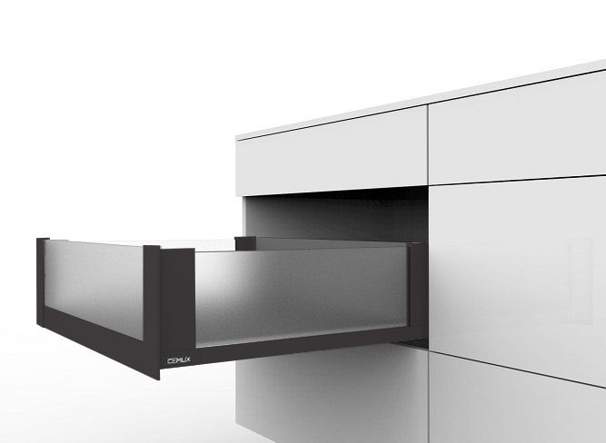 Vnitřní zásuvka H Box SLIM se skleněnou bočnicí a s držáky skleněného čela H138 je určená pro potravinové, nebo šatní skříně.