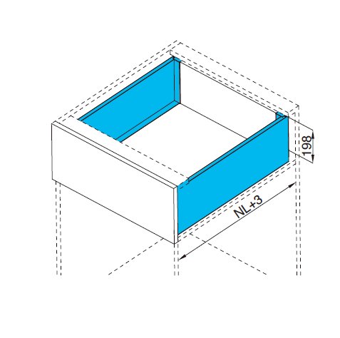 Vnitřní zásuvka H Box SLIM se skleněnou bočnicí a s držáky skleněného čela H138 je určená pro potravinové, nebo šatní skříně.