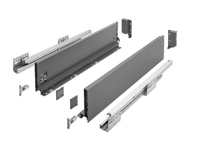 Zásuvku H Box SLIM s ultratenkou bočnicí o síle 12,8 mm a plnovýsuvem s dotlumením, využijete při výrobě šuplíků v kuchyni, ale i v koupelnách a obývacích prostorách.