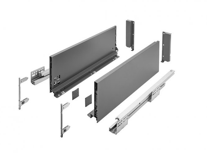 Zásuvku H Box SLIM s ultratenkou bočnicí o síle 12,8 mm a plnovýsuvem s dotlumením, využijete při výrobě šuplíků v kuchyni, ale i v koupelnách a obývacích prostorách.
