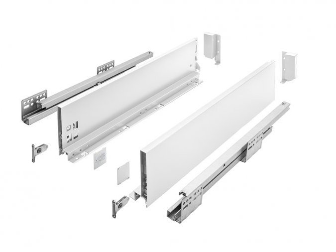 Zásuvku H Box SLIM s ultratenkou bočnicí o síle 12,8 mm a plnovýsuvem s dotlumením, využijete při výrobě šuplíků v kuchyni, ale i v koupelnách a obývacích prostorách.