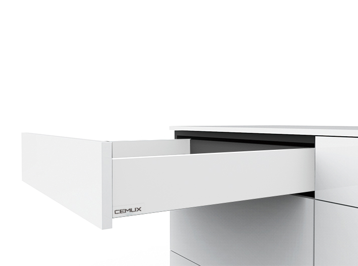 Zásuvku H Box SLIM s ultratenkou bočnicí o síle 12,8 mm a plnovýsuvem s dotlumením, využijete při výrobě šuplíků v kuchyni, ale i v koupelnách a obývacích prostorách.