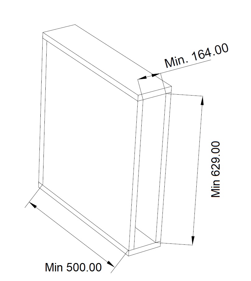 - Minimální vnitřní hloubka skříňky: 500 mm