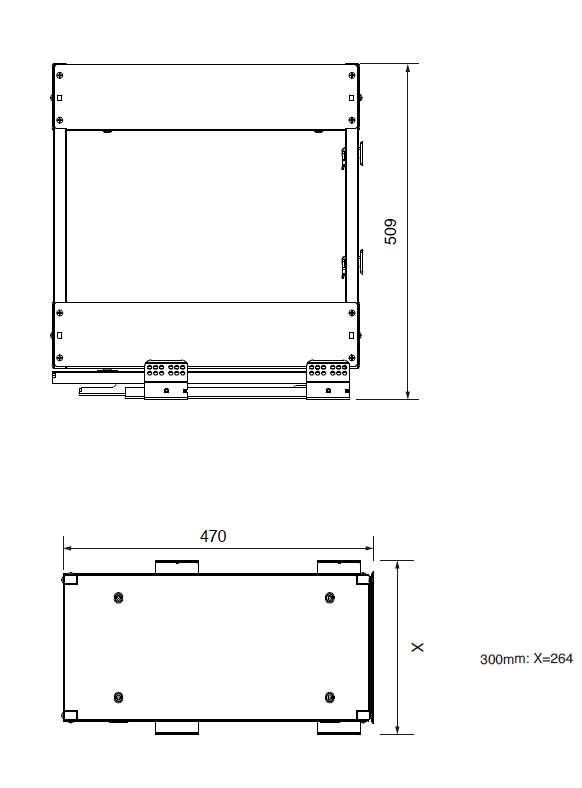 Plnovýsuvný dvojkoš IRON Line spodní s plným dnem určený do spodních skříněk v kuchyni.