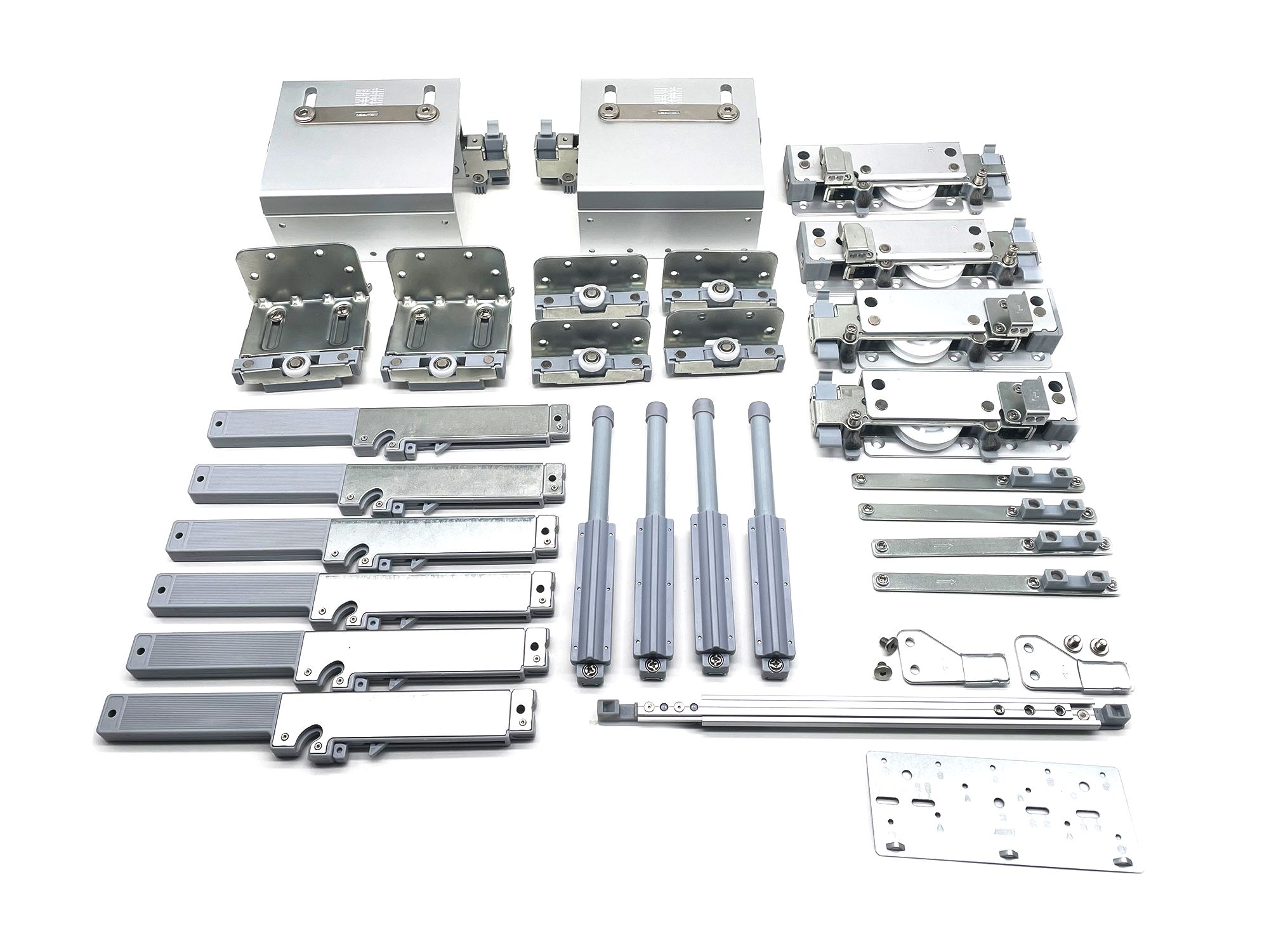Sada kování Cemux Planeo TOP pro 3 křídla pro skříňové naložené posuvné dveře.