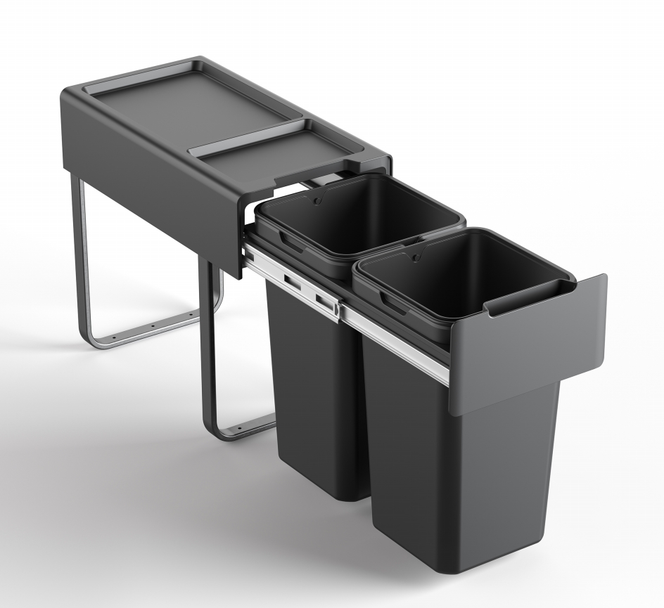 Odpadkový koš MEDIUM 30 s vlastním kuličkovým plnovýsuvem s tlumením.