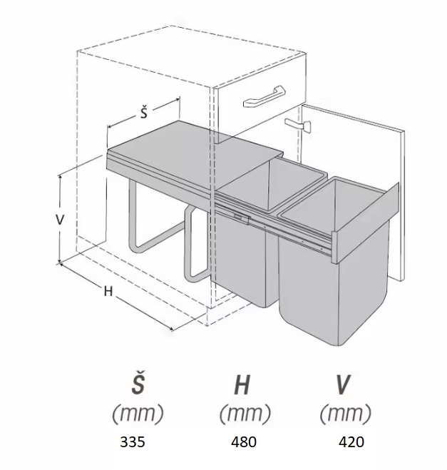 - Šířka koše: 335 mm