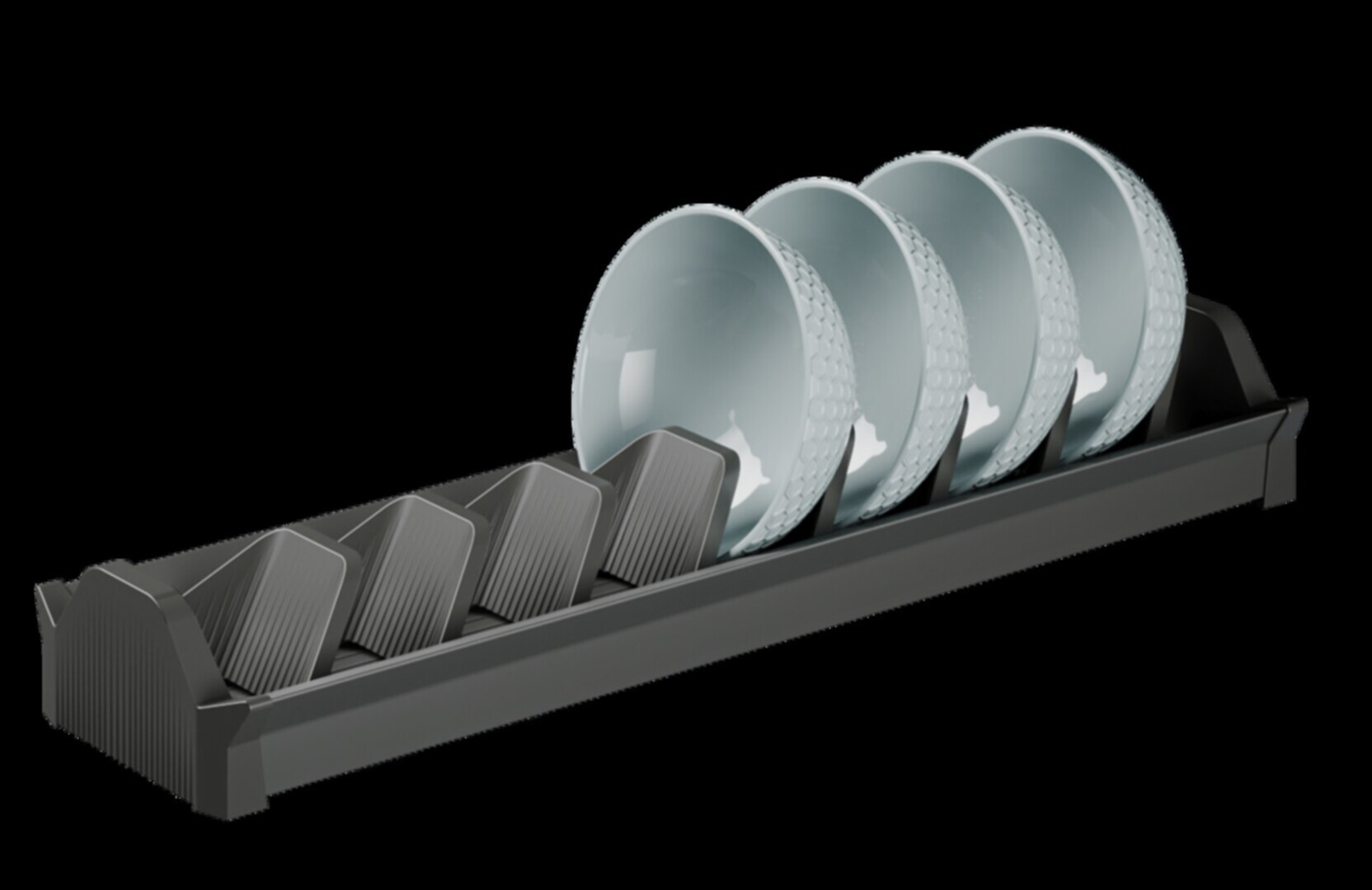 Praktický držák a odkapávač na misky do zásuvek pro hloubku 500 mm s přizpůsobitelnými příčkami.