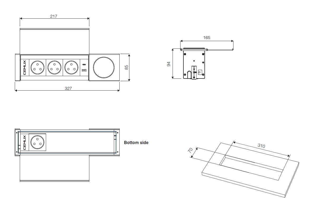 - Montážní otvor: 310 x 70 mm