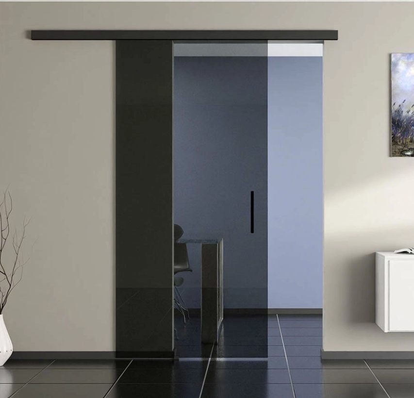 Sada pro 1 křídlo pro posuvné skleněné dveře firmy Cemux STARSHIP GLASS dodávané včetně kolejnice.