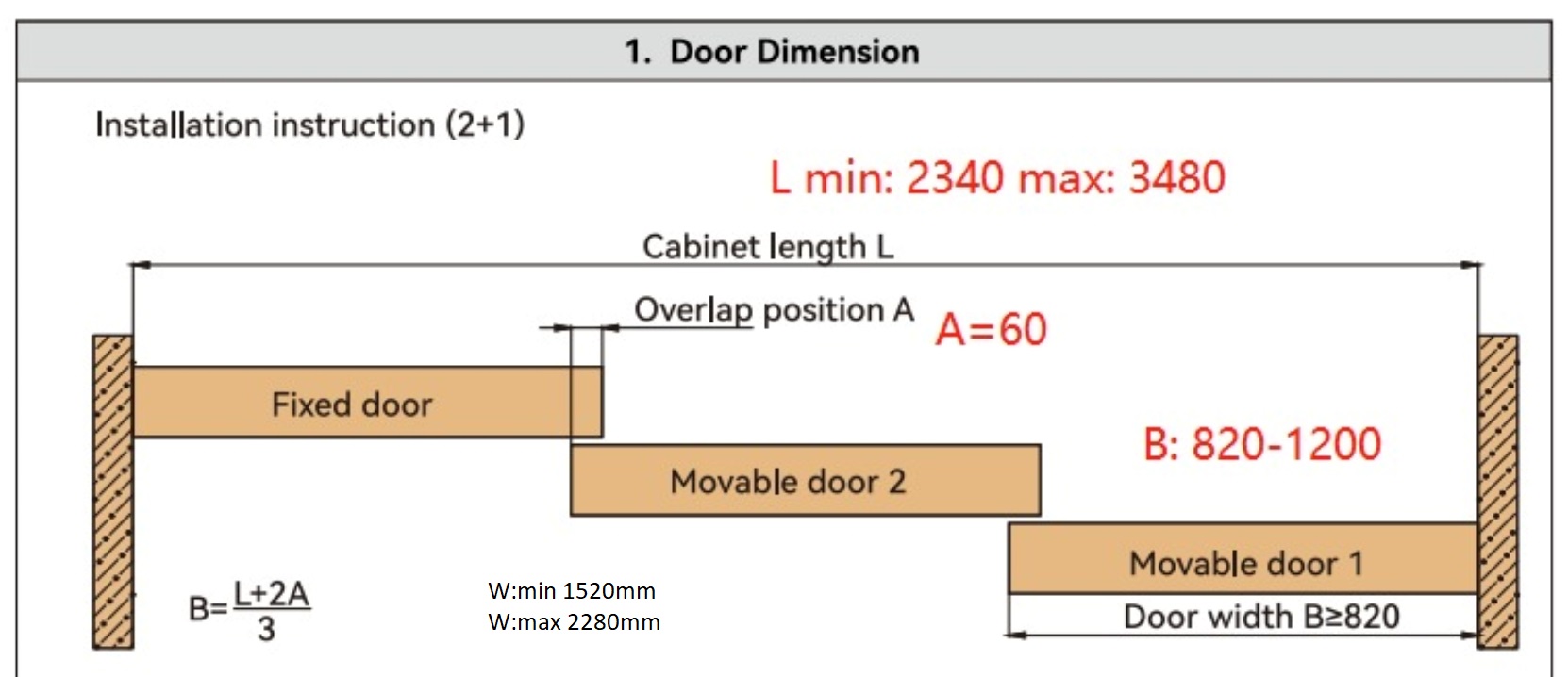 Při použití této sady 2 + 0 se dělá vždy 1 křídlo pevné a 2 křídla posuvná.