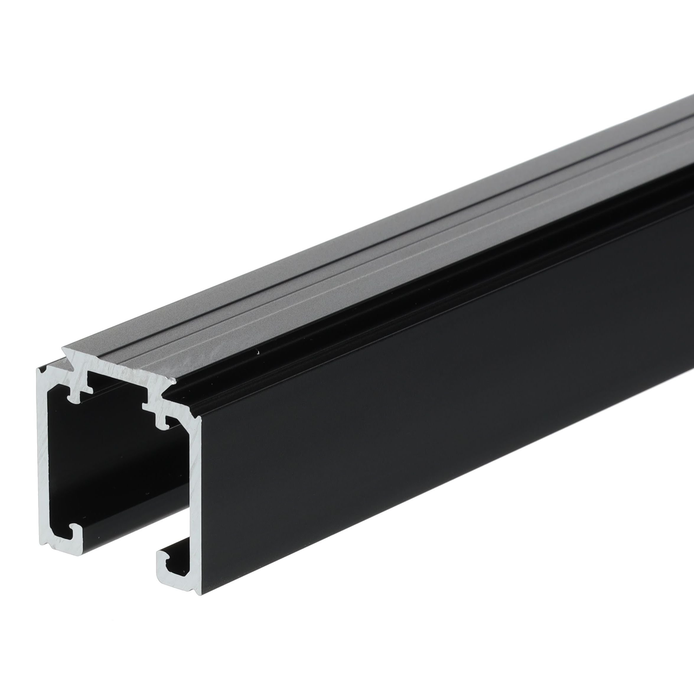 Samostatně lze doobjednat černý krycí profil pro horní kolejnice a černé boční krytky.