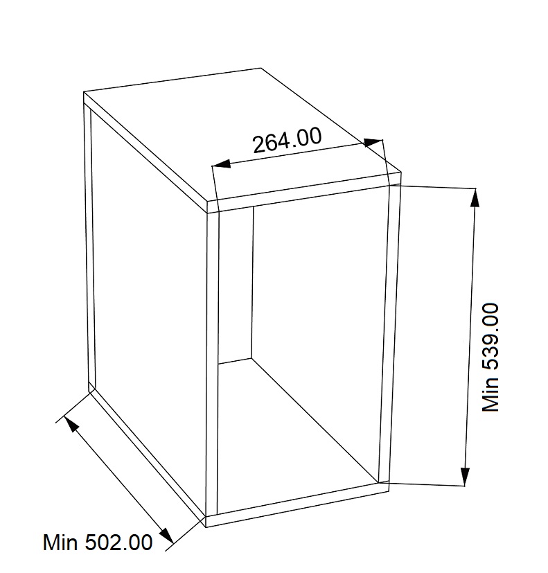 - Minimální vnitřní výška skříňky: 539 mm