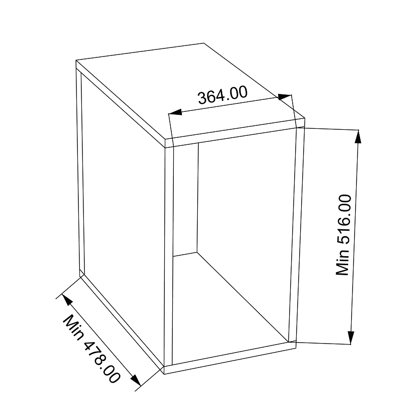- Minimální vnitřní výška skříňky: 516 mm