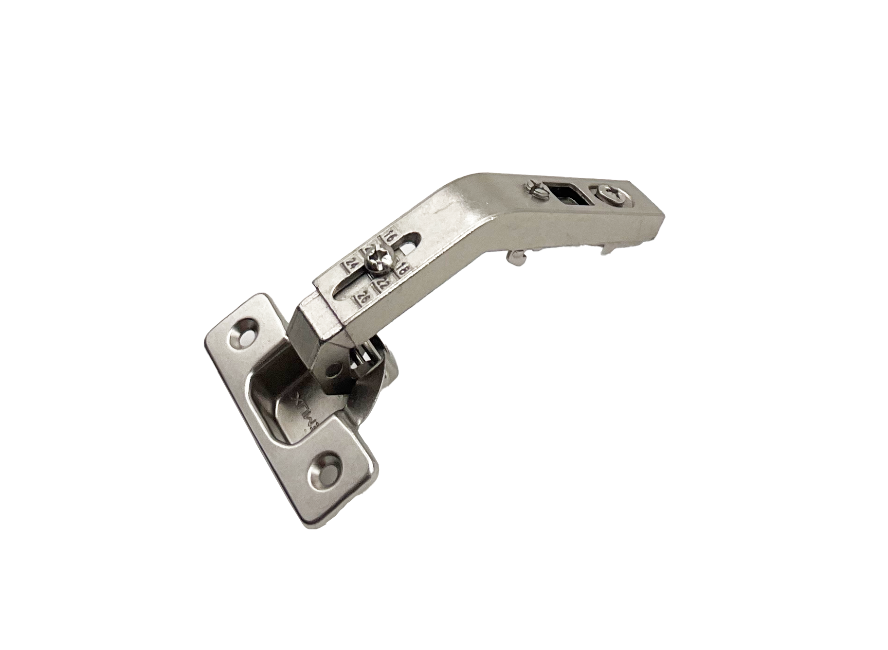 CEMUX NK závěs CLIP příložný zalomený 135° s úhlem otevření 95°, excentrem a dvoudobým otevíráním, které zajišťuje zvýšení životnosti a spolehlivosti.