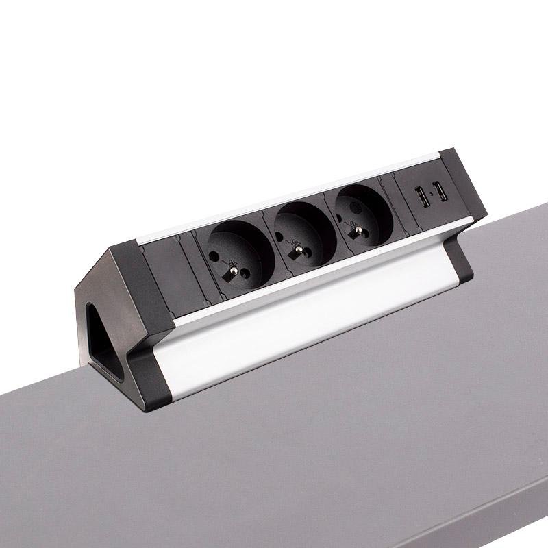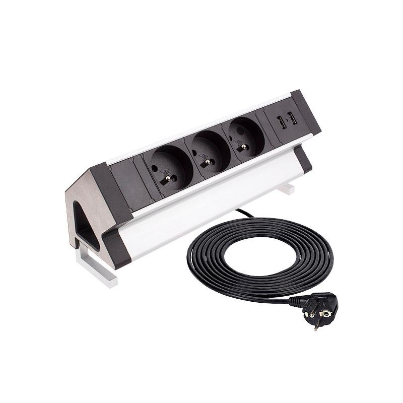 Design Light DESKBOX elektro zásuvka 3 x 230V a 2 x USB A/C nerez + kabel 1,8 m