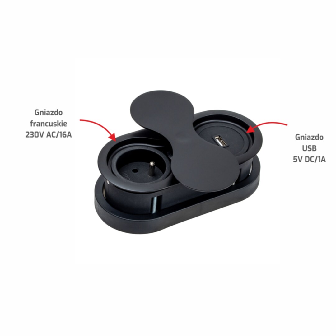 Design Light Elektro zásuvka EIGHT černá 1 x 230V + 1 x USB