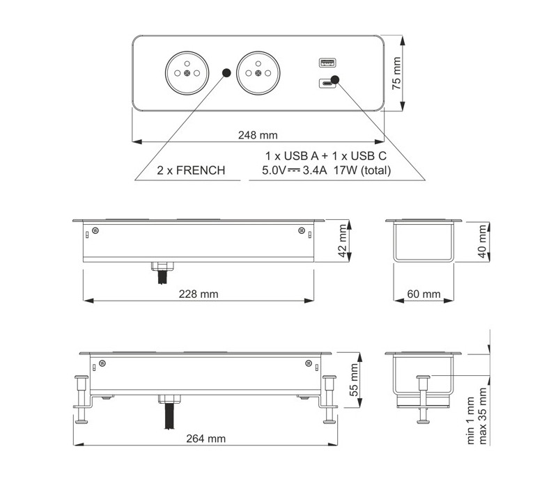 - rozměr zásuvky 248×75×42 mm