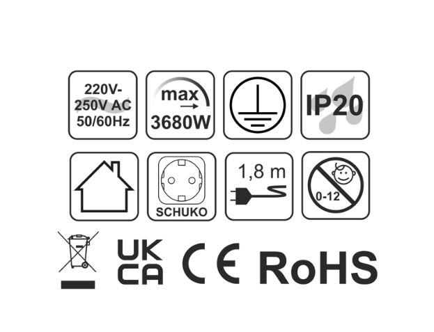 - Krytí: IP 20 ( pro vnitřní použití)
