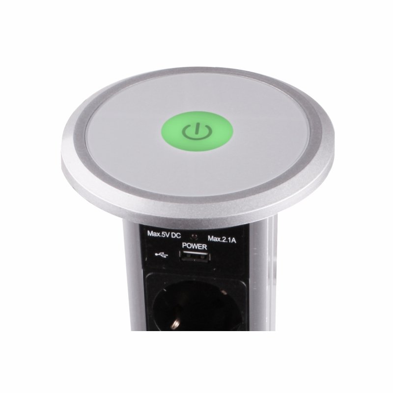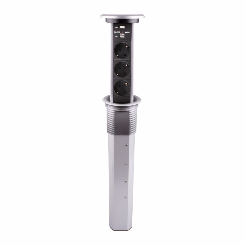 - elektromotorem ovládaná výsuvná trojzásuvka 3x230V + 2xUSB