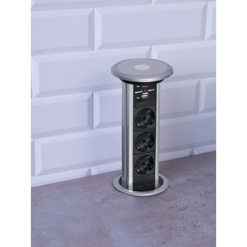 Design Light elektricky výsuvná zásuvk BOX 3x230V + 2xUSB,indukce, hliník