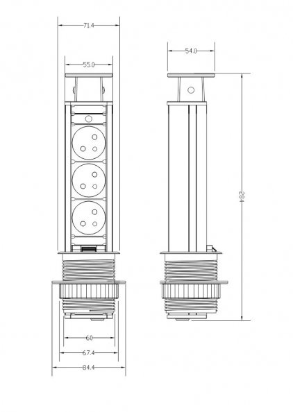 Design Light zásuvka elektro stolová výsuvná věž 60mm- 3x zásuvka + kabel stříbrná/ plast