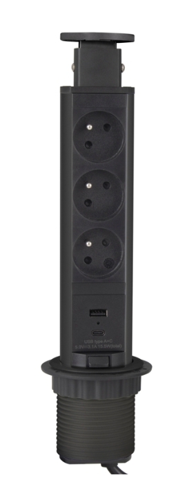 Design Light zásuvka elektro stolová výsuvná věž 60mm- 3x zásuvka+2xUSB A/C černá