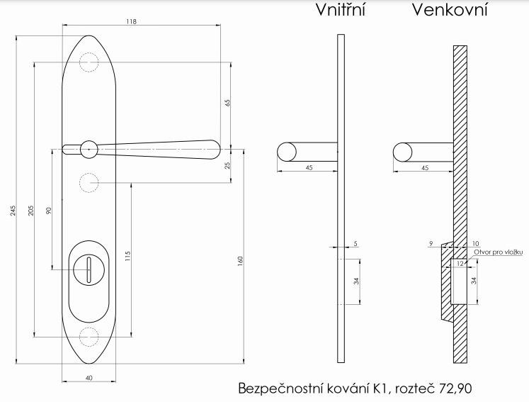 - určeno pro dveře od tloušťky 45 mm