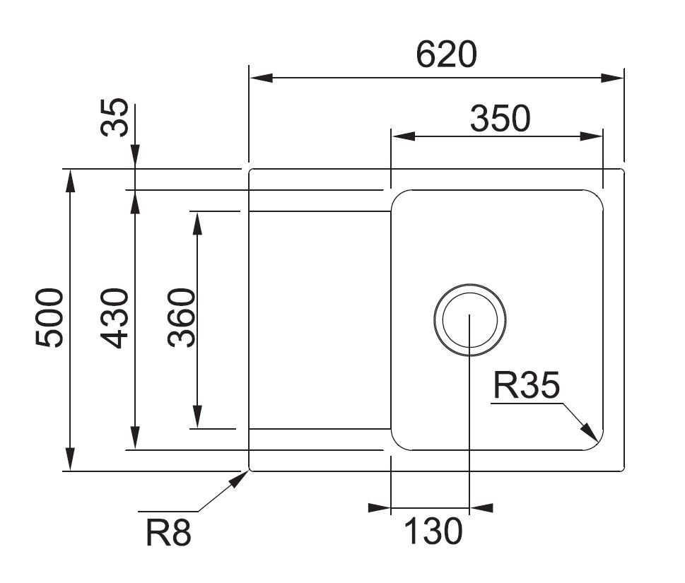 Rozměr dřezové nádoby: 350 x 430 x 180 mm