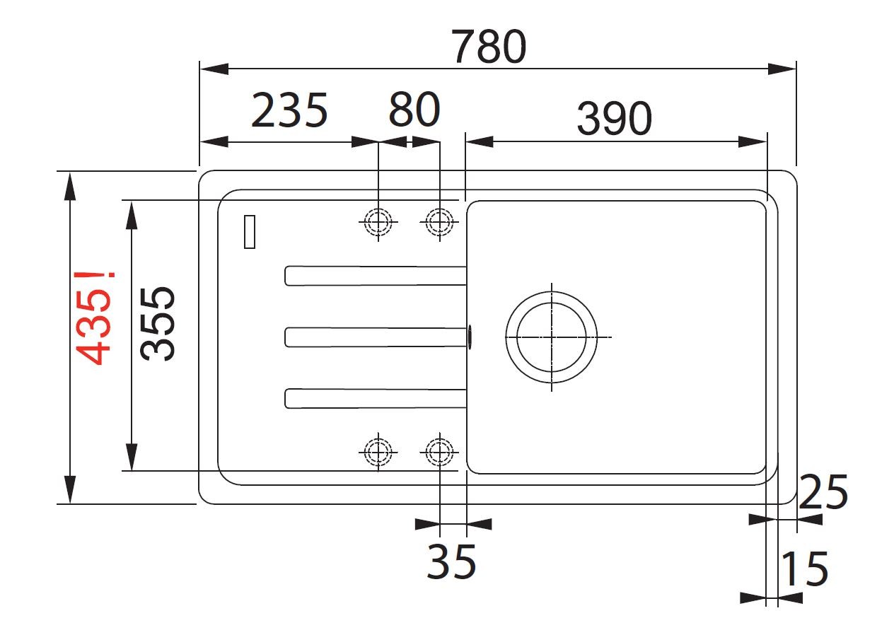 Dřez: 390 x 355 mm