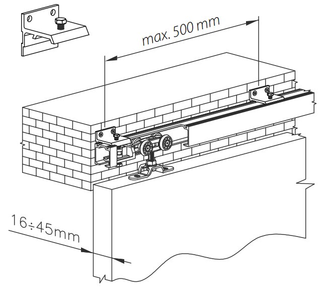 - Valcomp HERKULES boční držák horní kolejnice pro sílu dveří do 45 mm