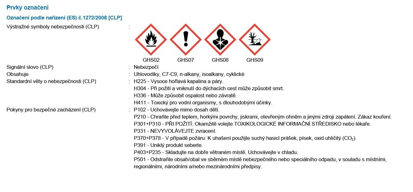 Další informace naleznete v technickém a bezpečnostním listu výrobku.