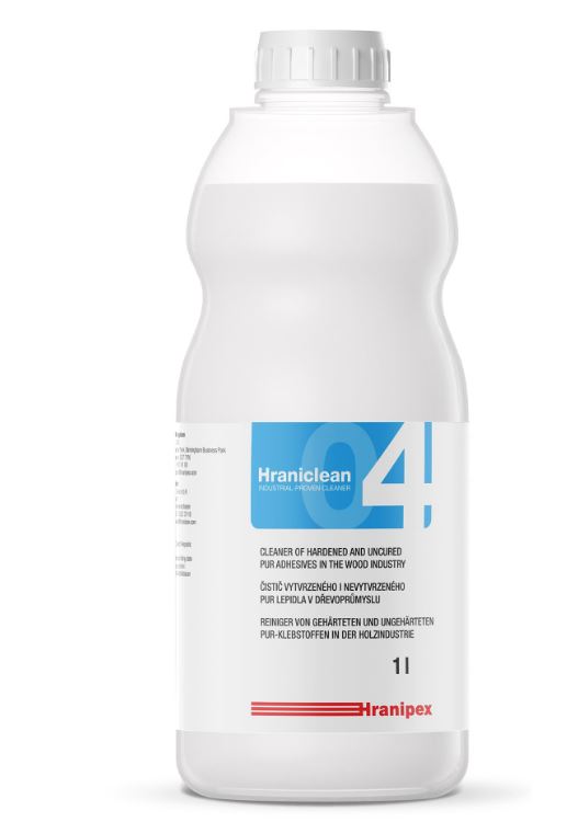 Čistící prostředek Hraniclean 04 v nažloutlé barvě slouží k čištění nástrojů, kterých zbaví lepidla na bázi polyuretanů (PUR). Nevytvrzené lepidlo na bázi PUR odmyje, lepidlo vytvrzené uvolní, vzhledem k jeho odolnosti ho nerozpustí úplně. Při odstraňování odolného vytvrzeného lepidla je nutné čistící prostředek Hraniclean 04 nechat působit několik minut.