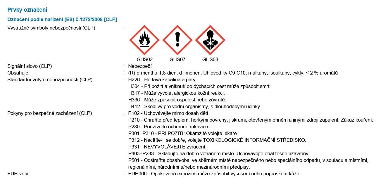 Další informace naleznete v technickém a bezpečnostním listu výrobku.